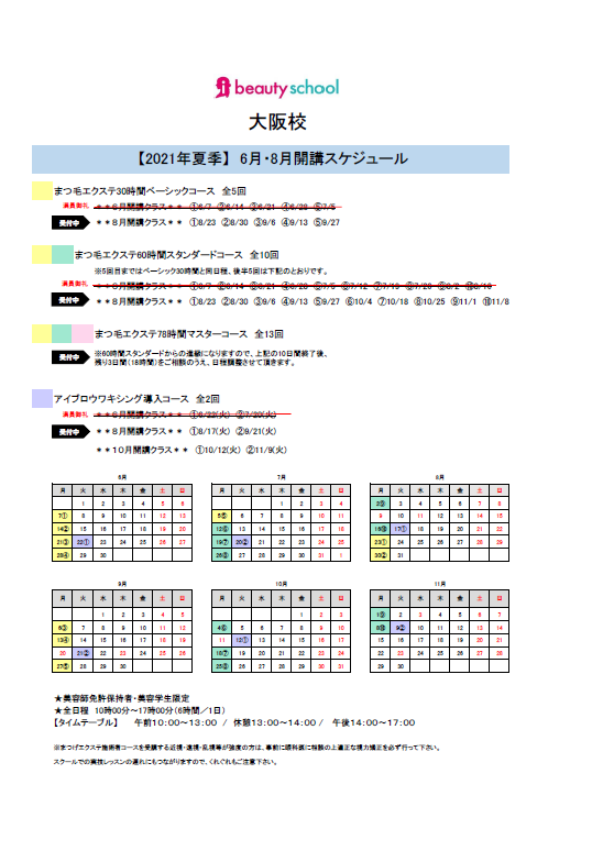 8月開講のまつげエクステ・アイブロウ各コースの申込受付がスタート致しました!!